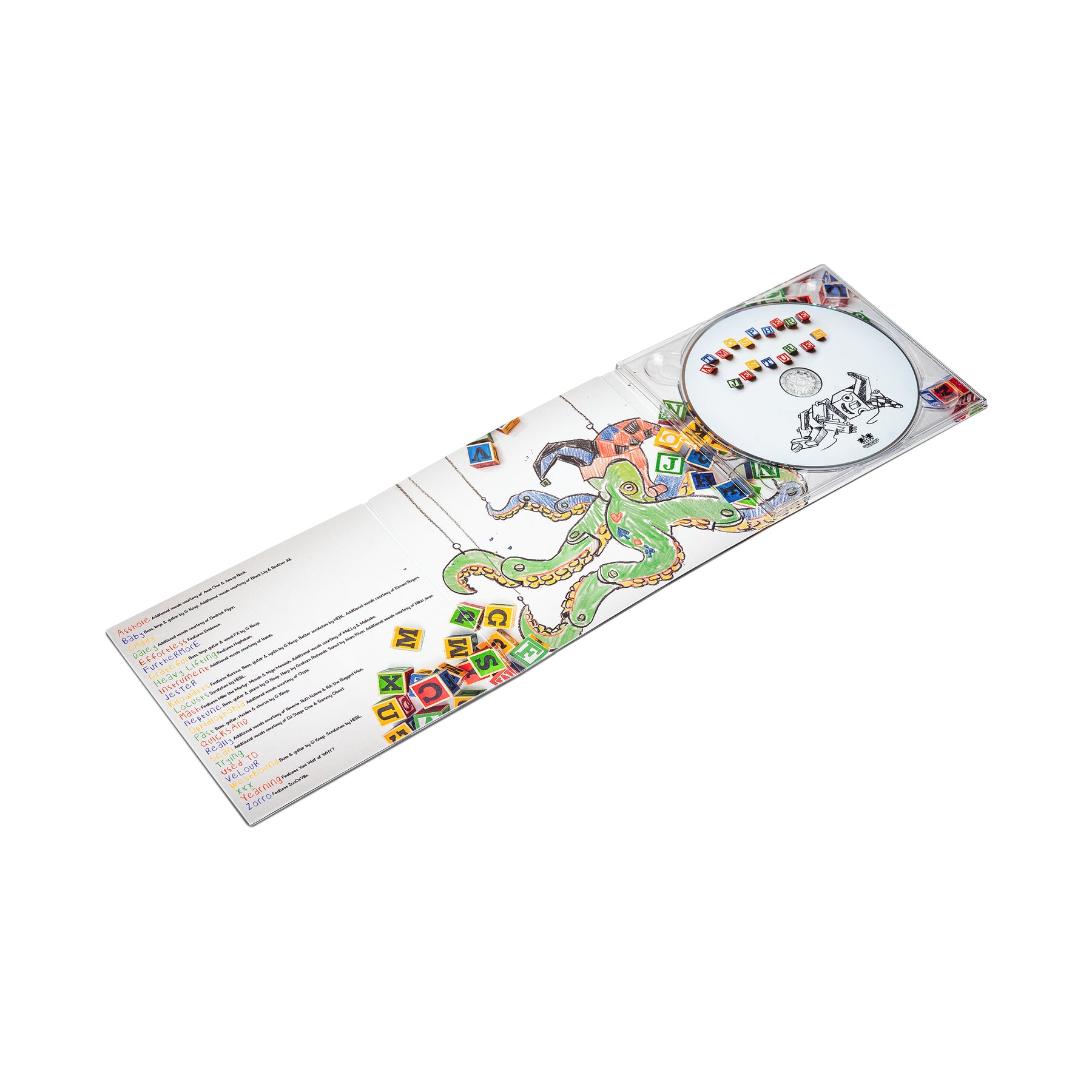 The album’s format is as ambitious as its themes: 26 songs, each beginning with a different letter of the alphabet, sequenced in order from A to Z. Even the guest features follow suit—Evidence appears on “Effortless,” Kurious on “Kilowatts,” and Musab, Muja Messiah, and Mike the Martyr all land on “Mash.” While the tracklist might seem sprawling, many of these songs are deceptively short—often just one or two verses—delivering their core ideas with surgical precision. The effect is a curated, flowing mosaic that captures a full emotional and creative arc without overstaying its welcome.